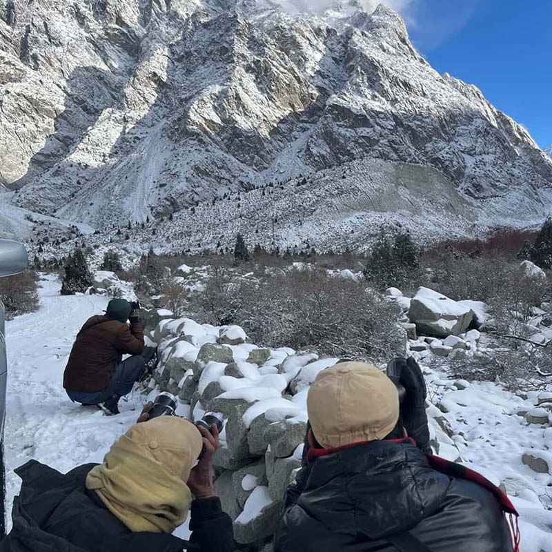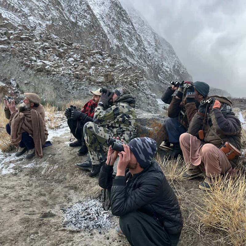 The day was sunny, 15 degrees, and calm. Two inches of fresh snow had fallen overnight, creating a blank mountain canvas. It’s hard to describe the beauty of the Himalayan mountains—it’s something you truly have to experience. One surprise to me was how many people from the local village helped us glass and spot Ibex.